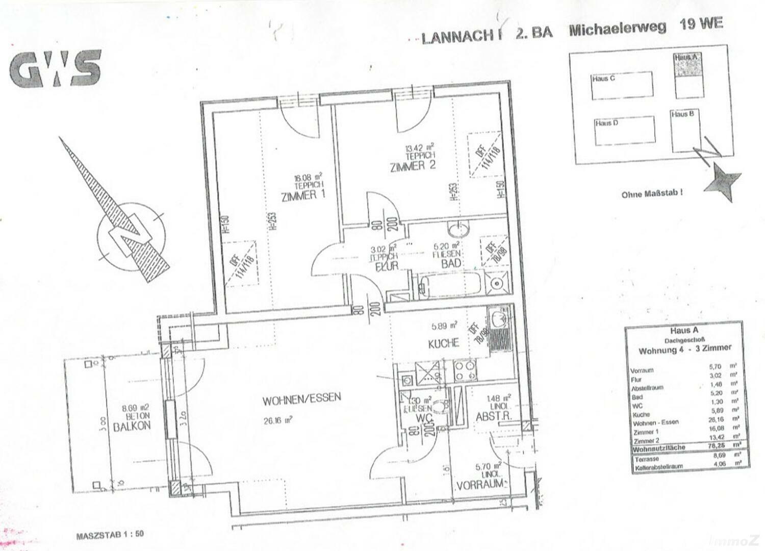 Diese gepflegte 3-Zimmer Dachgeschoss-Wohnung befindet sich ruhig aber dennoch zentral in einer kleinen Wohnanlage in Lannach. Das Gebäude wurde im Jahr 2003 errichtet. Die Wohnung wurde mit einer Klimaanlage sowie Insektenschutzgittern an den Kunststofffenstern ausgestattet und befindet sich in einem sehr guten Zustand.